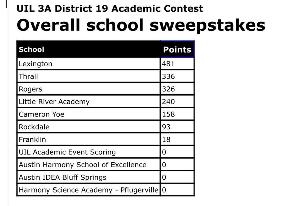 LHS had an AMAZING day of competition at the 19-AAA District Academic Meet at Connally HS today! We are once again taking home the District Sweepstakes Championship!